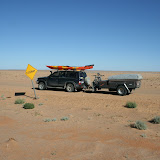 As I have intimated already, when we were back in the Flinders Ranges we had congratulated ourselves on our cunning itinerary-planning, which ensured we would be far away from caravan parks over Easter and out on the remote Oodnadatta track and on Lake Eyre. We had received early reports even back then, that water from the Queensland floods had finally found its way into Lake Eyre and we were naturally pleased to now have a worthy comeback-reply to the large amounts of teasing we have had over the past two months about having kayaks on our roof in a drought-ridden South Australia - and so we proudly informed everyone we were going to kayak on Lake Eyre! What we didn’t quite anticipate at that stage though, was just how much the imaginations of half the population of a frenzied Adelaide would be equally as captured by this rare event as us – or that these people love to come and “do the Oodnadatta” at Easter because the weather is cooler and they have the long weekend to do it!. Jeeeez! By the time we had arrived in Parachilna we realized the extent of our naivety in thinking we could have the Oodnadatta track and Lake Eyre to ourselves and that, in short, we were buggered….by man’s race to see a bit of bloody water! But it wasn’t until we arrived further north in the town of Maree - gateway to the Oodnadata and Lake Eyre - that our noses were really rubbed in it. We were quickly informed by 4WD people making their way back that, “you cant see it unless you take a flight”. This was accompanied by remarks such as “hey, nice kayaks, where were you thinking of using them then?! You can’t get to the water!” followed by heaps of guffaws! Even the Lake Eyre Yacht Club wasn’t sailing (and how funny that there IS a Lake Eyre Yacht Club given that there has only been water on it 3 times in the past 150 years!).