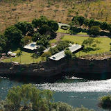 At 1pm it was time for lunch, with all 12 of us being seated on the long, dark-timbered veranda, at a stylishly set table which had colours to complement those of the natural surrounds we could see around us. And the view Gordon and I had of those surrounds, was nothing short of spectacular! The Homestead has a complete, uninterrupted eagles-eye view of the immense Kimberley wilderness. Every tree, shrub and blade of grass in its manicured grounds, I was told, were planted with the aim of creating an extraordinary oasis. As our eyes spanned across the lush green lawn (a weird sight after so much dust for so long on our travels!), down to the beautiful swimming pool, the cliffs-edge of the gorge and beyond that to the wonderful Chamberlain River below it and it’s tree-lined far banks, we thought we had landed in heaven! But heaven, it would seem, actually appeared when lunch did! A more than amply portioned, mixed Seafood Salad – of Barramundi, Ocean Trout, King Fish, Calamari and Scallops with a Thai Basil, Chilli and Lime Vinagriete – sent our tastebuds tingling, along with freshly made sourdough bread and plenty of rather special Riesling to accompany it. Would you believe it, we still even had room after that, for the English Trifle that followed - complete with its strawberries, sherry and crème anglaise! (I am sorry to report that no photos of any our food were taken during our stay - I know that’s not like us but then somehow it didn’t seem quite appropriate to be getting down close to our plates with the camera, at a table of 10 other diners, some of whom were perhaps a bit more well-heeled than us! So we will leave it to your imaginations instead!) Nevertheless, slightly more well-monied people than us or not, a delightful hour was spent with everyone chatting to one another and swapping stories from all their walks of life!